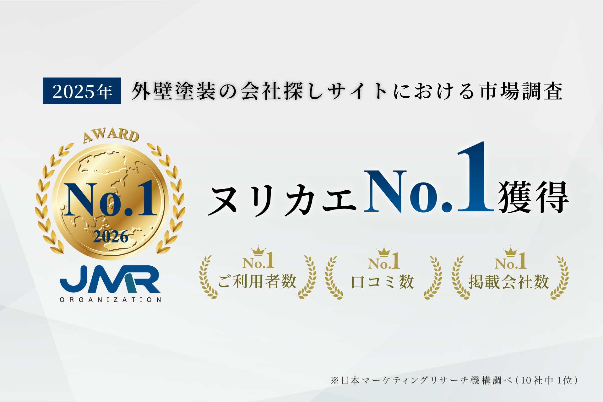 ヌリカエ、「外壁塗装の会社探しサイトにおける市場調査」にて、利用者数・口コミ数・掲載企業数にてNo.1を獲得し、三冠を達成