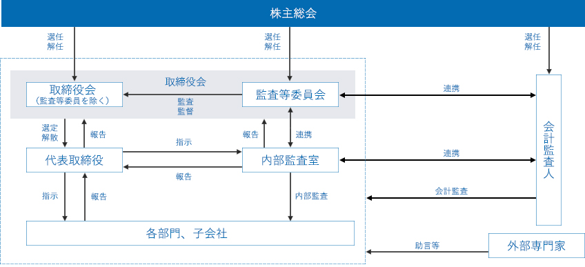 内部統制システムの構築・運用の取り組み状況については、内部監査室および会計監査人との情報交換をはかり、監視・検証しております。